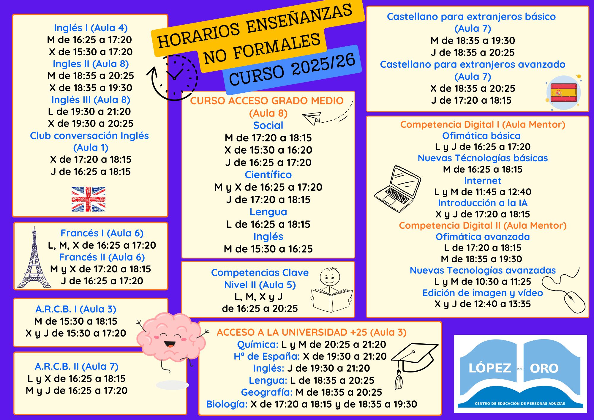 HORARIO ENSEÑANZAS NO FORMALES 25-26