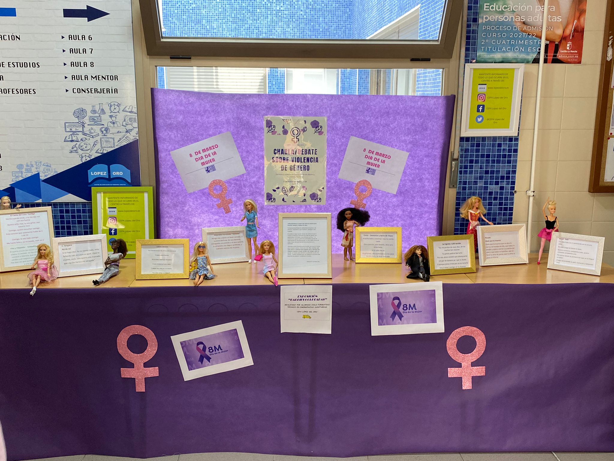 Los alumnos del ciclo de Emergencis Sanitarias han realizado la exposición “BARBIES GOLPEADAS” en la que se muestra el contenido machista de determinadas letras musicales.